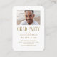 Mini magazine style graduation announcement and invitation feature gold color elegant graceful serif and script name with photos, more grad party details on the back, sophisticated and timeless, Custom it with your own photos and information.