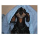 Miniature Dachshund Peek a Boo Black and Tan Miniature Dachshund peeking out from under a light blue blanket