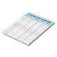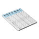 Miniature golf scorecard template custom notepad. Personalised tear away note block for mini golf player, golfer, business, sports club, shop, game, location etc. Lined paper for 18 holes golf course and 4 players so people can fill in their scores and add up their total number of shots on each hole. Simple layout with title, lines, text and colours that can be changed optionally. Handy paper sheets for keeping score in match ups with friends and family.