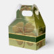 Miniature Leprechaun in 3D. Design on gable favour box + "Happy St Patrick's Day" into a green circle + vintage St Patrick's Day postcard as background.