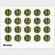 Miniature Leprechaun in 3D + "Happy St Patrick's Day" into a green circle. Design on round sticker.