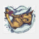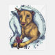 A Miniature Pinscher - dog wrapped in a cosy, blue polka-dotted blanket holds a gingerbread cookie.