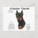 Your favourite AKC dog breed is the black/rust Miniature Pinscher. This is the perfect breed gift, telling all about Miniature Pinschers. A great dog lover gift on a t shirt, hoodie, mug, sticker, magnet, button, ornament - makes a great MinPin Christmas gift. The Miniature Pinscher originated in Germany and is part of the AKC Toy Group. They are fearless and self possessed - with a spirited presence who is quick, brave and active. Despite their small size, they are a valuable watchdog who thinks he is a big dog. Pictured here is the black/rust variety. This breed can also be known as Zwergpinscher and Min Pin.