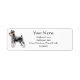 A mini schnauzer dog and address label printed in stylised font but may be altered to your taste.