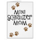Miniature Schnauzer Mum t-shirts & gifts feature Miniature Schnauzer Mum text and a trail of pawprints. A great gift idea for Mini Schnauzer doggie moms. Many shirt, t-shirt & apparel choices as well as hats, stickers, mugs, travel mugs and gift items. Shirts in many styles and colours for kids and adults. Sweatshirts and stylish, fun and fashionable shirts, too. Of course, we also have Miniature Schnauzer Dad t-shirts & gifts.