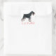 These fun canine stickers features an image of a beautiful miniature Schnauzer puppy dog with love printed in a cute pink font highlighted against a crisp white background.