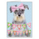This is a gorgeous birthday card featuring a colour photographic image of a super cute Miniature Schnauzer dog wearing a pale pink polka dot bow in her hair set against a pale blue polka dot background. The text HAPPY BIRTHDAY is written on coloful pink, green and red patterned bunting in the lower sectioin of the card. This would make a great card for any Schnauzer or dog lover. My thanks to DQT for the wonderful bow tie and great service. Natalie Kinnear Photography Fine Art Photographic Artist Print and Canvas Wall Art for Home Decor and Interior Design www.nataliekinnearphotography.co.uk www.facebook.com/natkphoto