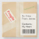 This button resembles a miniature corrugated cardboard shipping box covered in tape and signs reading "FRAGILE Handle With Care" and "Please do not drop." The shipping label can be customised with your own text to say anything from " I Love You" to "Have a nice day" or promote your brand or business.