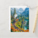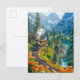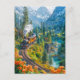 Miniature steam train in alpine forest holiday postcard