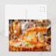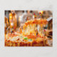 miniature workers cutting melting cheese pizza holiday postcard