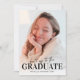 Modern 2026 graduation announcement card featuring on the front a photo of the graduate, the cute saying "hats off to the graduate", their name, and class year. On the reverse is another picture, their graduation details, and their plans for the future.