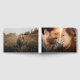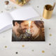 Minimal and elegant wedding guest book featuring your choice of real gold, silver or rose gold foil, your favourite engagement photos on the front and the back overlayed with your names joined together by a heart and your wedding date in simple modern typography.