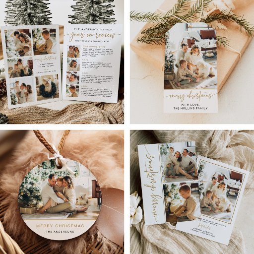 Minimal 6 Photo Christmas Card Modern Gold Elegant