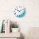 Minimal Abstract Blue Waves Brush Art | Large Clock