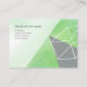 The minimalist design of the business card features a green cube, cleverly incorporating positive and negative shapes to create an abstract aesthetic.