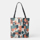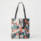 This tote bag features a minimal geometric abstract seamless pattern in a retro and vintage style. The bold lines and shapes create a unique, eye-catching design, perfect for adding a touch of classic elegance to any style.