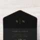These elegant, modern dark black wedding all-in-one invitations feature a simple text design in real gold foil (on the inside of the card) that exudes minimalist style. Add your initials or monogram to make them completely your own. A detachable rsvp card is included, which serves as both a combo traditional rsvp your guest can return, as well as a QR code for those who prefer to rsvp online instead.
