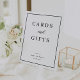 This elegant, modern wedding tabletop sign features a simple black and white text design that exudes minimalist style. The sign says "Cards and Gifts" in classic black text and modern script calligraphy for a stylish and chic look that will perfectly coordinate with the rest of your wedding or bridal shower decor.