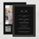 These elegant, modern engagement party invitations feature a simple dark black and white minimalist text design, with a classic frame at the border. Add your initials or monogram to make them completely your own. The back of the invitation features your favourite personal photo, plus a scannable QR code.