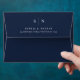 These elegant, modern wedding envelopes feature a simple dark navy blue and white text design that exudes minimalist style. Add your initials or monogram to make them completely your own.