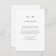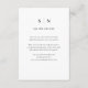 These elegant, modern wedding guest detail cards feature a simple black and white minimalist text design with your initials or monogram. You can use these cards for driving directions, reception or transportation information, hotel or accommodations information, and any other wedding details you need your guests to know.