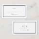 These elegant, modern wedding place cards feature a simple white and navy blue minimalist text design, with a classic frame at the border. Add your initials or monogram to make them completely your own.