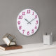 Minimal Arabic Numbers White Raspberry Pink Large Clock
