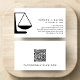 Minimal business card for lawyers featuring an abstract illustration of the scales of justice and your name, title (Attorney At Law, Counsellor, Partner, etc.) and contact information (such as email, telephone numbers, firm name and mailing address) in clean, simple and modern lettering. On the back, input a web address to create a scannable QR code linked to your website and add additional text or leave blank.
