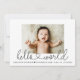 Minimal Baby Photo Hello World Modern heart script Announcement