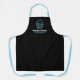 you and your staff will look adorable baking, cooking, serving, working the register, etc. in this chic branded apron with space for your business name, employees name, or anything else you'd like to include. Design features a modern minimal cupcake outline logo graphic in simulated blue holo metallic iridescent foil. below are two lines of custom text, both in simple contemporary sans serif fonts. Personalise with your business name, an employee name and title, or anything you'd like. Perfect for any sort of business really. the rolling pin icon can be replaced or omitted all together.