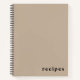Modern recipe notebook features a minimal design in a simple neutral beige and black colour palette. Custom text presented in the lower right hand corner in stylish simple classic font.