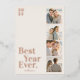 A modern and refined New Year card featuring a clean vertical photo strip and bold “Best Year Ever” typography. The layout blends understated elegance with a simple editorial feel, giving your favorite photos the spotlight. Customizable text for the year and family name adds a personal finishing touch, making this the perfect template for celebrating meaningful moments, reflecting on a memorable year, and sharing warm wishes for the year ahead.