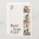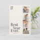 A modern and refined New Year card featuring a clean vertical photo strip and bold “Best Year Ever” typography. The layout blends understated elegance with a simple editorial feel, giving your favorite photos the spotlight. Customizable text for the year and family name adds a personal finishing touch, making this the perfect template for celebrating meaningful moments, reflecting on a memorable year, and sharing warm wishes for the year ahead.
