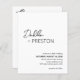 Modern black and white budget all in one wedding invitation featuring a simple and minimal design with the bride's name in an elegant script and the groom's name in a contemporary sans serif font. Below in the lower right corner are your event details in a minimalist layout. The back has your additional details and QR Code, so you can skip the enclosure card and RSVP card.
