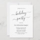 Modern Black and White Script Minimalist Holiday Party Invitations is perfect for a simple Christmas event. Features an elegant winter „Holiday Party” text in a beautiful hand lettered Calligraphy swirly swash-tail font script in black on white background. Easy to personalise with your name and party details.
