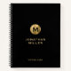 Modern Minimalist Black Gold Brushed Metal Monogram Medallion Initial Name Title Custom Text Professional Notebook