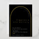 MInimal black, gold, and white wedding foil invitation with and arched design and a small branch.