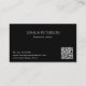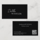 Modern and professional black business card featuring a simple and minimal design with your name in an elegant script and contemporary sans serif font. The back has your contact info and optional QR code in a minimalist layout. If you prefer, the QR code may be removed in the design editing tool.