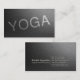 Minimal Black Silver Embossed Text Yoga Instructor Business Card