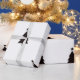 This Christmas stars and trees pattern wrapping paper features a bold contrast of bright white stars scattered across a deep black background, creating a fun and contemporary look that's perfect for wrapping all the gifts for family, friends, co-worker, boss, or neighbour this season of holiday celebration.