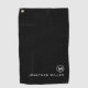 Modern golf towel design features a black background, with your monogram initial and name in white a simple stylish professional look.