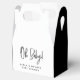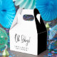 Celebrate the couple's baby shower with their custom favour boxes for the guests. Black and white, gender neutral design with modern typography with the words "Oh baby!", elegant and chic. Customisable names.