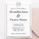 This classic, simple wedding invitation is an elegant introduction to your big day. Framed by a simple yet chic border with space for the couples initial monogram, the timeless black and white text shares all the important details.