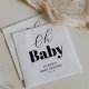 Modern baby shower party napkins featuring a plain white background, the title "oh baby", and a elegant template that is easy to personalise.