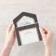 AVAILABLE WITH OR WITHOUT A QR CODE OR DINNER SELECTION OPTIONS. This design features a charcoal black background with a white text area framed in faux rose gold. A monogram with the bride and groom's first initial on the outside flap completes it. Created by Simply Farmhouse Press.