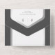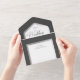 AVAILABLE WITH OR WITHOUT A QR CODE OR DINNER SELECTION OPTIONS. This design features a charcoal black background with a white text area framed in faux silver foil. A monogram with the bride and groom's first initial on the outside flap completes it. Created by Simply Farmhouse Press.