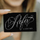 These professional modern and minimal "refer a friend" business referral cards feature trendy white handwritten script ''refer a friend'' , on a black background. Customize further with your offer and business details, contact information on the back.