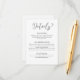 This minimal and elegant wedding details card features sleek black text on a crisp white background, offering a refined and contemporary aesthetic. Designed for clarity and sophistication, it provides essential information in a clean, easy-to-read format. The timeless design complements various wedding themes, from classic to modern, making it a versatile addition to your stationery set. Fully customisable, this card allows you to personalise every detail effortlessly, ensuring a seamless and stylish way to keep your guests informed.