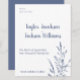 This is a modern and simple design in slate blue and white. This clean design is classy and timeless. The grasses accenting this invitation give it a coastal or prairie vibe that results in a very elegant aesthetic. Matching and coordinating items available in my store to give you event a curated look.