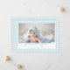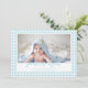 Minimal Light Blue Gingham Check Pattern photo Birth Announcement